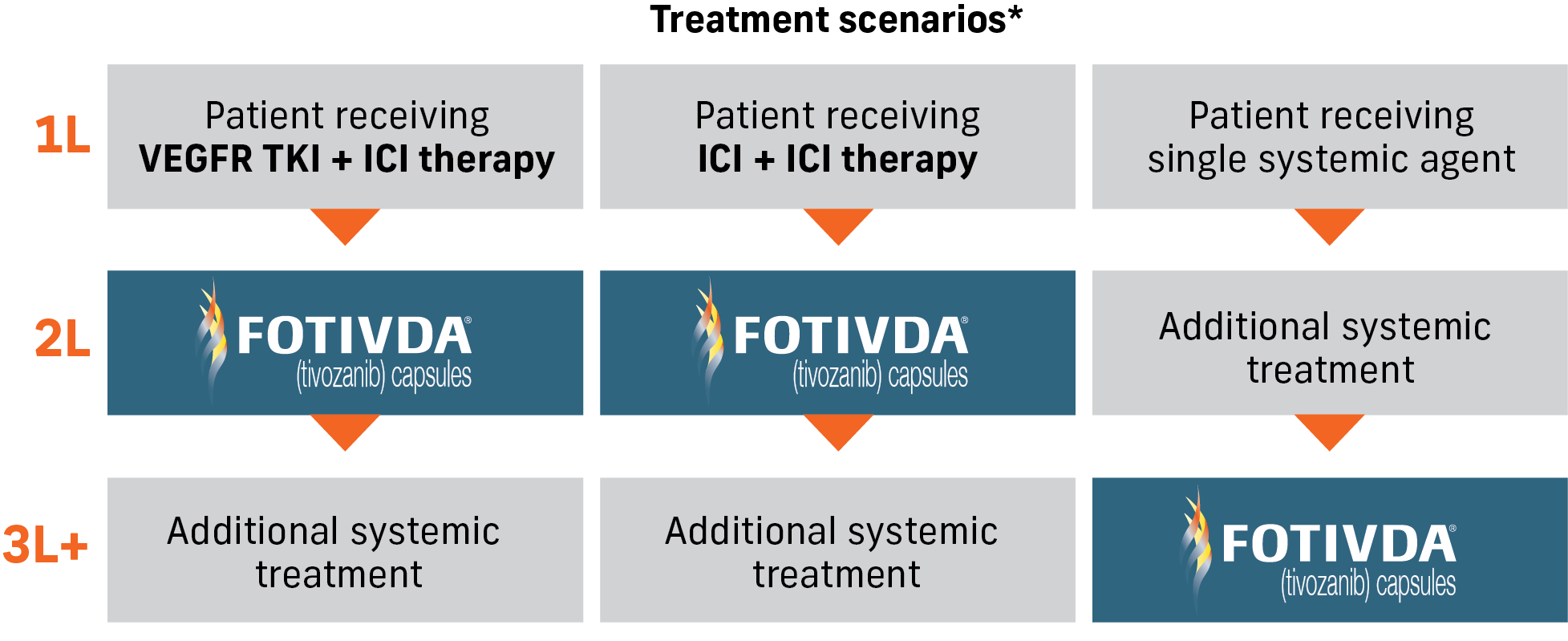FOTIVDA is indicated for the treatment of adult patients with relapsed or refractory advanced renal cell carcinoma (RCC) following two or more prior systemic therapies.
